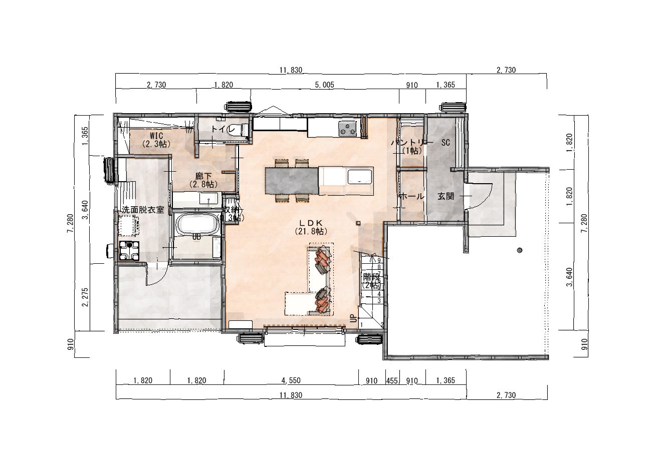 1階 平面図(水彩)
